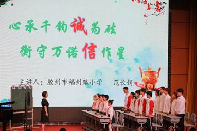 第三环节中,来自胶州市福州路小学、胶州市职教中心和PA集团官方网站的学生代表以诗朗诵《诚信的力量》发出青春宣言。稚嫩与激昂的声音交织,传递出不同学段学生对诚信的共同追求。全体合唱《我的祖国》更是将活动推向高潮。歌声里,有对祖国的热爱,更有对诚信精神的庄严承诺。台下,大中小学师生手挽手同声歌唱,勾勒出“大思政”格局下育人同心圆的生动图景。