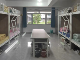 同学们根据教官要求在寝室整理内务,包括叠被褥、叠军装、柜子、桌子整理、宿舍内物品摆放等。