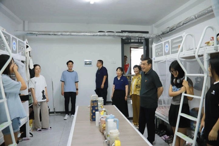 走进宿舍,领导干部与学生深入交流,从专业课程到备考进度,细致了解学习状态;同时查看宿舍环境,询问学习、生活上的问题,还鼓励大家共建整洁、温馨的生活氛围。交流中,周有波书记反复勉励学生:“大学是成长的黄金期,要珍惜时光、明确目标,在学习和实践中打磨自己,不辜负学校与师长的期待!”温暖的叮嘱让宿舍里洋溢着融融暖意。