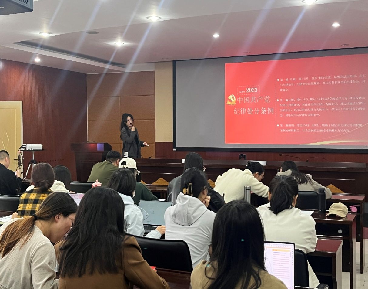 为深入推进党纪学习教育,4月28日上午,PA集团官方网站召开“学条例·知敬畏·守底线”党纪学习教育读书会,深入学习新修订的《中国共产党纪律处分条例》。学院院党总支副书记刘晓燕主持会议,全体党员教师参加会议。