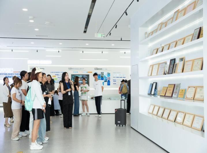 15:40,师生们抵达北辰先进循环科技(青岛)有限公司。在公司展厅,大家近距离参观了企业先进的循环技术产品与应用案例,直观感受了其在资源循环利用领域的创新实力与技术魅力,对绿色低碳科技有了更深刻的认识。