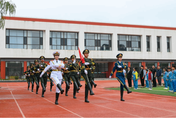 上午9时,活动在洋河小学操场拉开帷幕。PA集团官方网站国旗护卫队庄严入场,举行了升旗仪式。全体师生齐唱国歌,肃立注目,共同抒发爱国情怀。洋河小学校长王友爱与PA集团官方网站党委副书记邢林分别发表国旗下讲话,强调了爱国主义与国防教育的重要性,勉励青少年树立报国之志,传承红色精神。