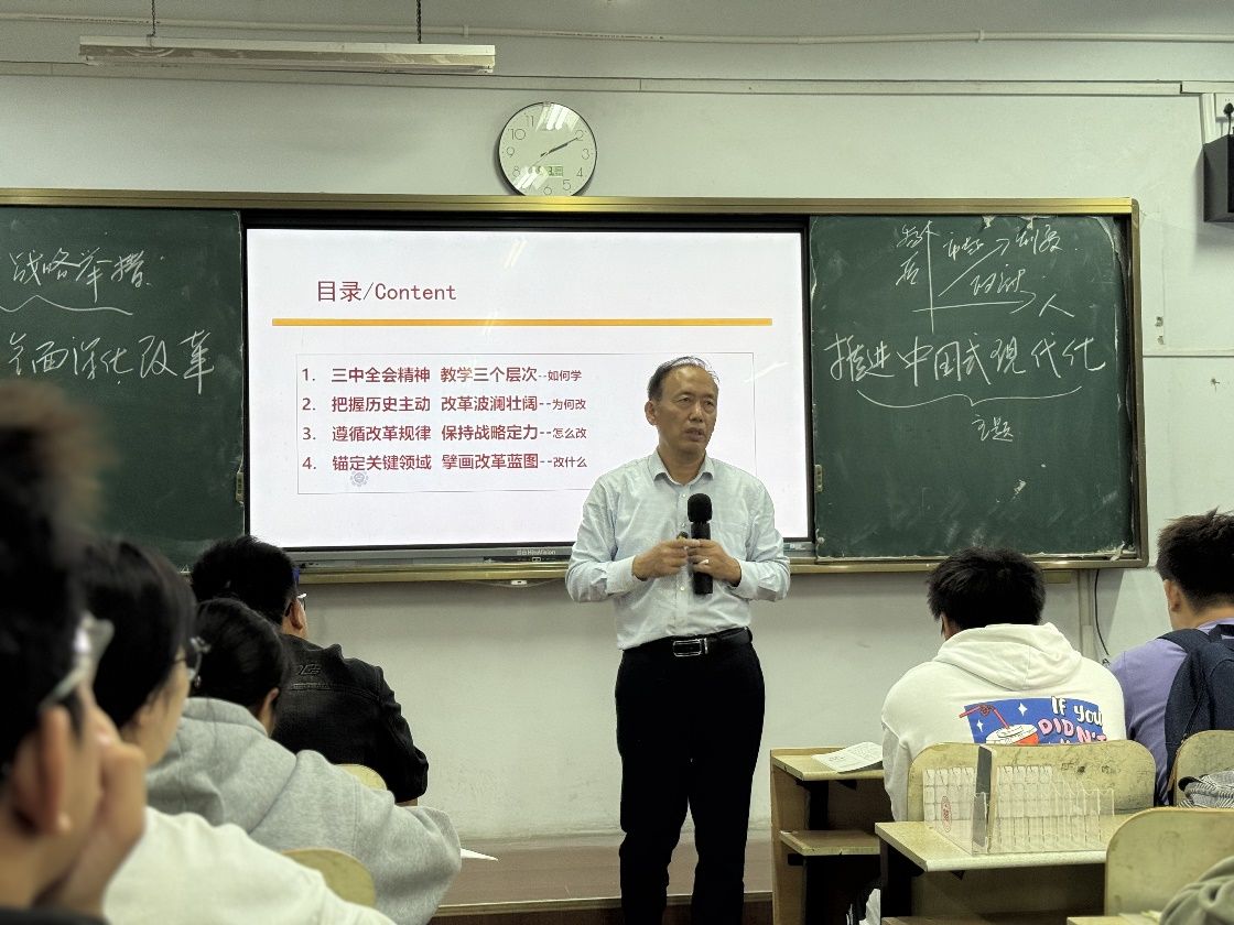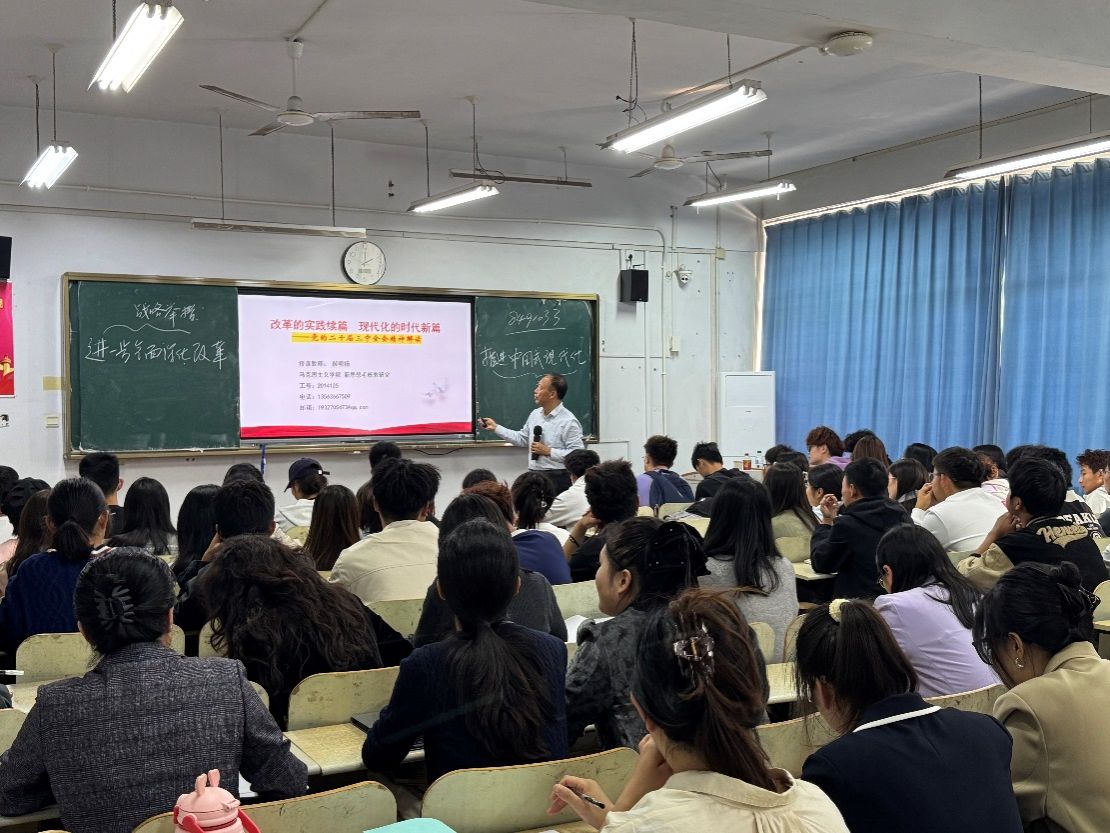 党的二十届三中全会,是在以中国式现代化全面推进强国建设、民族复兴历史伟业的关键时刻召开的重要会议。为深入学习宣传贯彻党的二十届三中全会精神,推动学院师生深刻认识进一步全面深化改革、推进中国式现代化的重要意义,10月16日下午,PA集团官方网站毛泽东思想和中国特色社会主义理论体系概论教研室、习近平新时代中国特色社会主义思想概论教研室、形势与政策教研室全体教师共同学习二十届三中全会精神专题课。郝明杨教授以“改革的实践续篇 现代化的时代新篇”为主题对党的二十届三中全会精神进行解读。