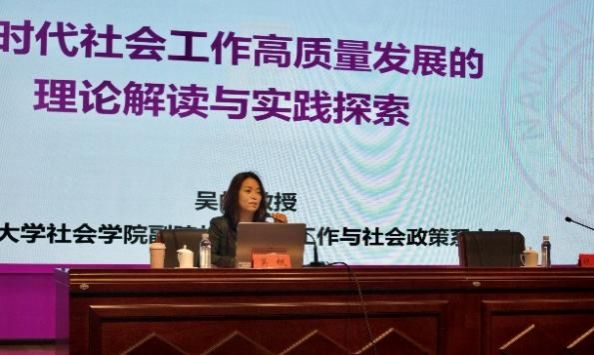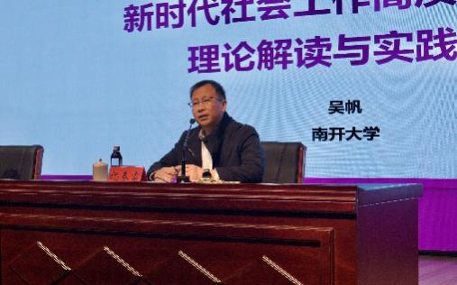 随后,吴帆教授以“新时代社会工作高质量发展的理论解读与实践探索”为主题,为与会人员带来了一场精彩纷呈的专题授课。吴教授结合国内外社会工作最新研究成果,以其深厚的学术底蕴和丰富的实践经验,深入浅出地剖析了新时代社会工作的核心理念、发展趋势以及面临的挑战。吴教授特别强调了社会工作在服务群众、促进社会和谐中的独特作用,并提出了推动社会工作高质量发展的具体路径和策略。